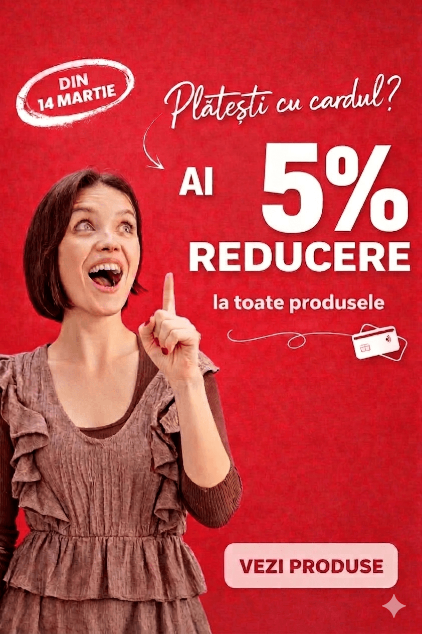 🎉 Plătește cu cardul și bucură-te de 5% reducere! | 🚚 Transport gratuit la comenzi de peste 300 lei!