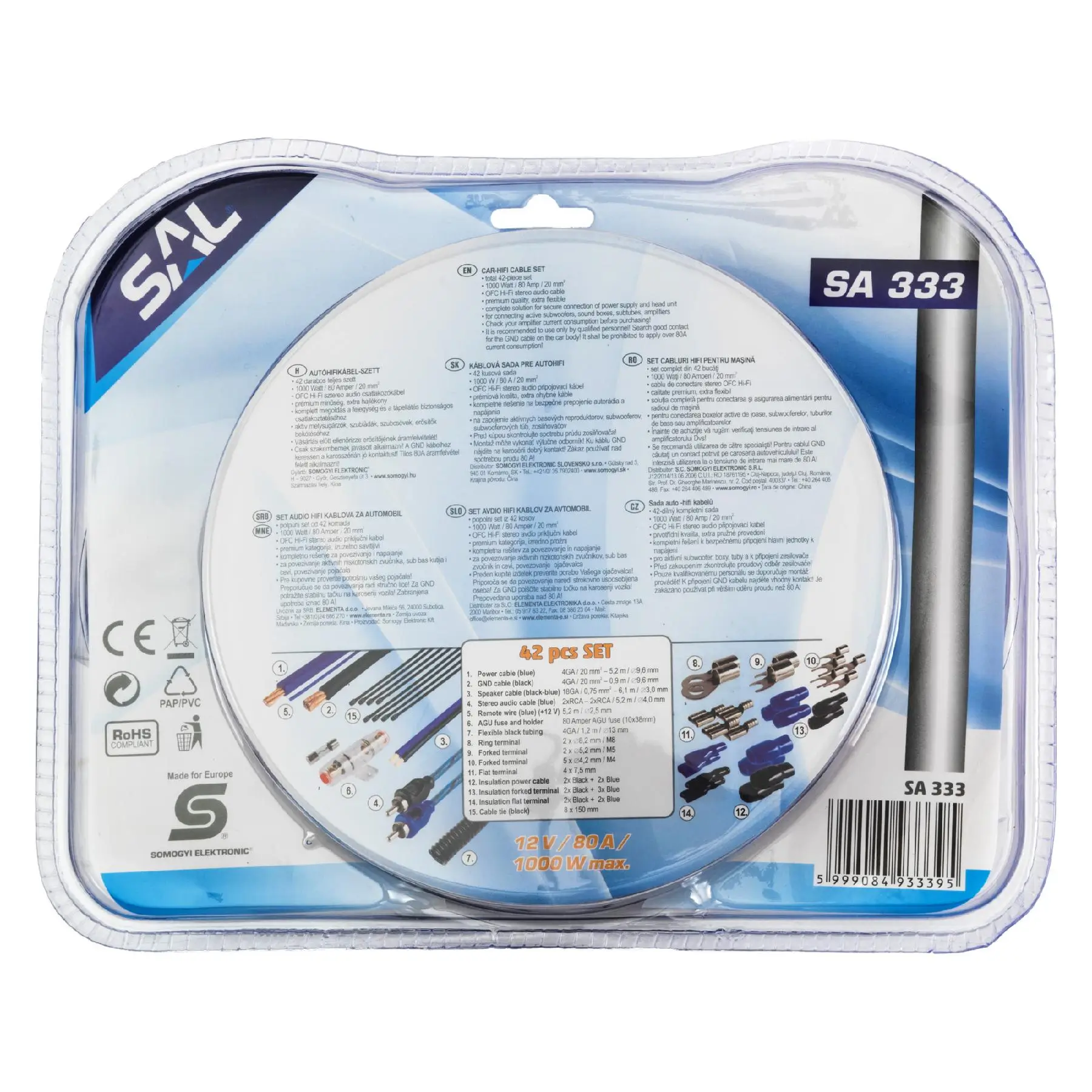 Setul subwoofer SAL SA 333 include 42 piese de cabluri de alimentare de înaltă calitate, ideale pentru sisteme audio profesionale și casnice, oferind o putere maximă de 1000W și o conexiune sigură pentru un sunet clar și stabil.
