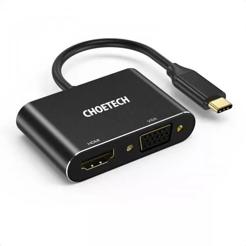 HUB USB Type C - 1x HDMI + 1x VGA Choetech M17 negru