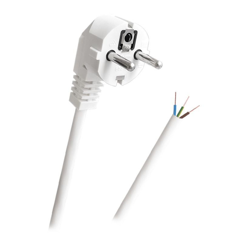 Cablu electric flexibil, echipat cu stecher Schuko și capăt dezizolat, 3 fire de 1mm², lungime 3 metri, ideal pentru conexiuni electrice sigure și eficiente în diverse aplicații casnice și industriale.