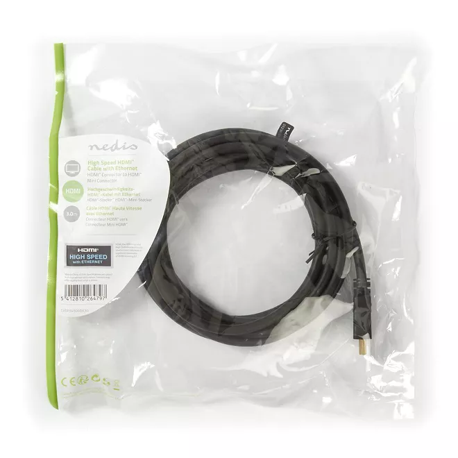 Cablu mini HDMI la HDMI de 3 metri, proiectat pentru transmisie video si audio de inalta calitate, suportand rezolutii pana la 4K la 30Hz si viteze de transfer de 10.2Gbps. Integreaza Ethernet pentru conectivitate suplimentara, asigurand o conexiune stabila si fara interferente intre dispozitivele compatibile.