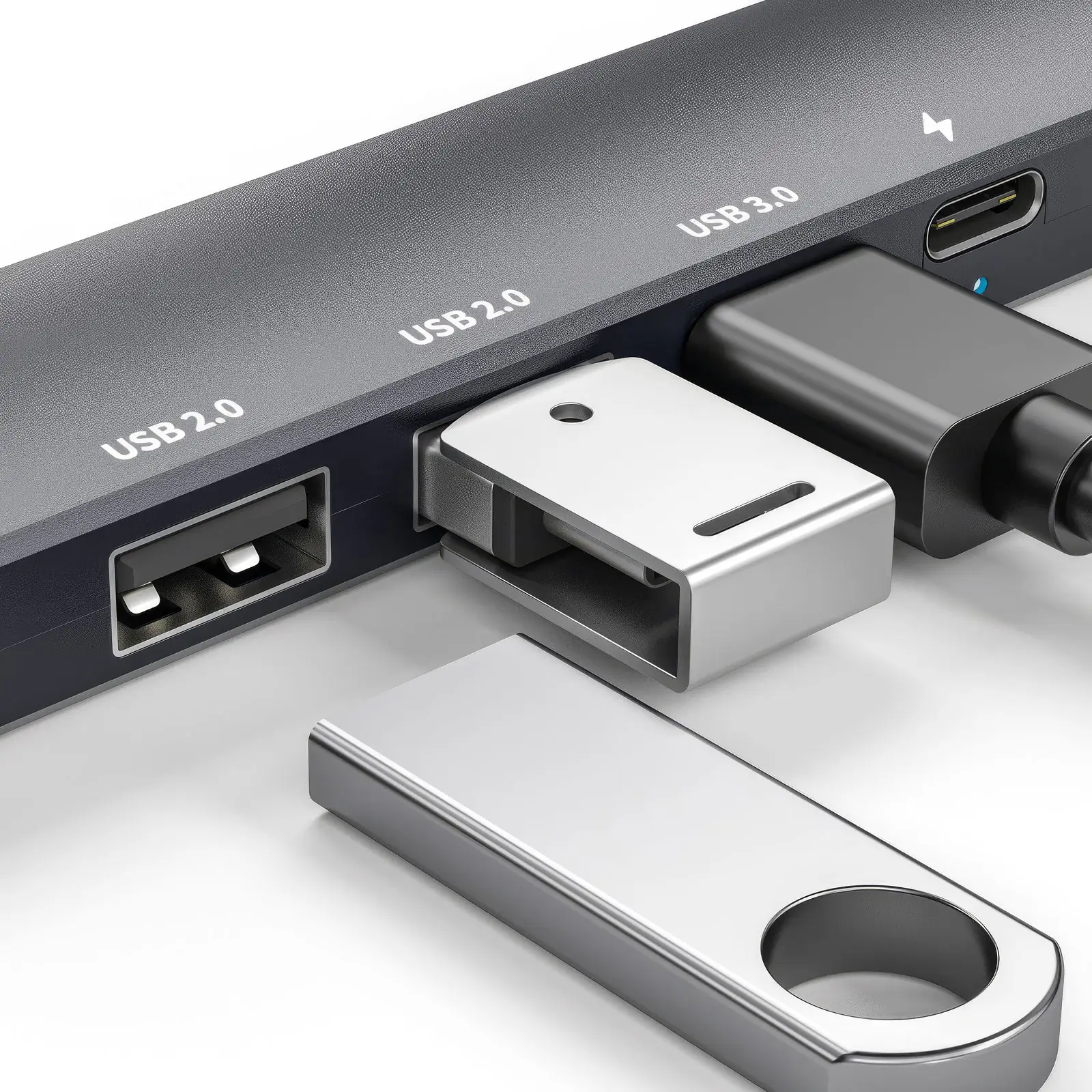 Permite conectarea simultană a mai multor dispozitive, oferind o soluție compactă și eficientă pentru extinderea porturilor laptopului sau PC-ului fără compromis la viteza transferului sau calitatea video.