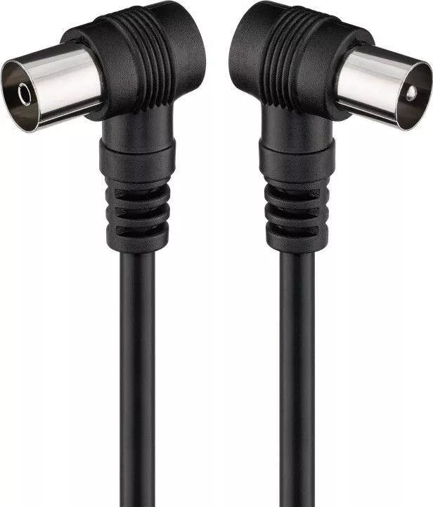 Acest cablu coaxial Goobay de 1.5 metri, cu conectori tata și mama cotiti, este ideal pentru conectarea echipamentelor TV sau de comunicații, asigurând o transmisie stabilă și o instalare ușoară datorită designului său flexibil și compact.