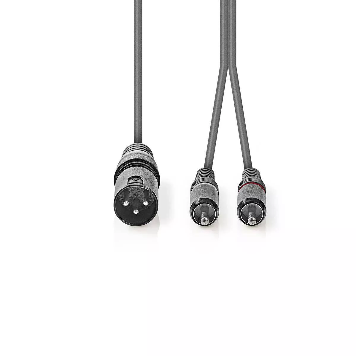 Cablu audio stereo profesional NEDIS, lungime 1.5m, cu conector XLR 3-Pin tata la un capăt și două conectori RCA tata la celălalt capăt, ideal pentru conexiuni audio de înaltă calitate între echipamente audio și mixere.