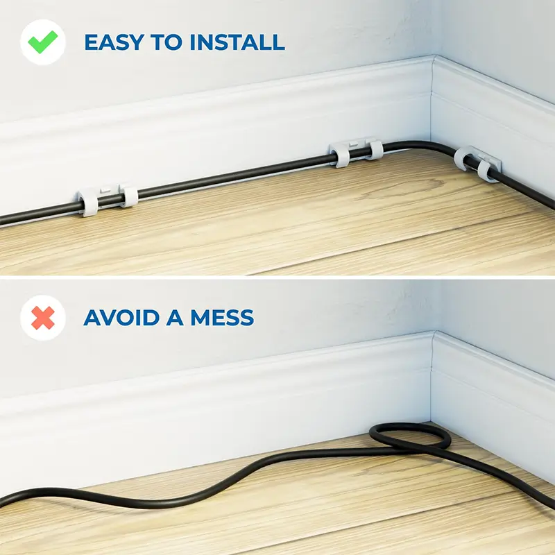 1. Cum se instalează suporturile de cablu MK5535? R: Suporturile sunt autoadezive și se pot fixa pe diverse suprafețe fără unelte suplimentare. 2. Ce tipuri de cabluri pot fi utilizate cu aceste suporturi? R: Suporturile sunt potrivite pentru diferite tipuri de cabluri, ajutând la organizarea acestora.