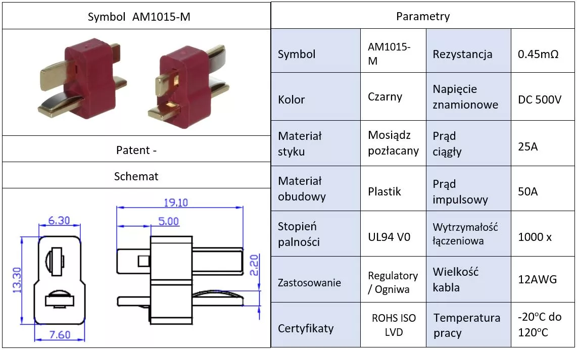 Mufa alimentare DC AM-1015 tata PIN 2 pe cablu lipite 25A AMASS AM1015-M. Producător AMASS. Conector mufă, tip conector alimentare DC, serie conector AM-1015, subtip conector tată, numărul de pini 2, montare mecanică pe cablu, montare electrică lipite, placare contact gold flash, culoare roșie, curent nominal 25A.