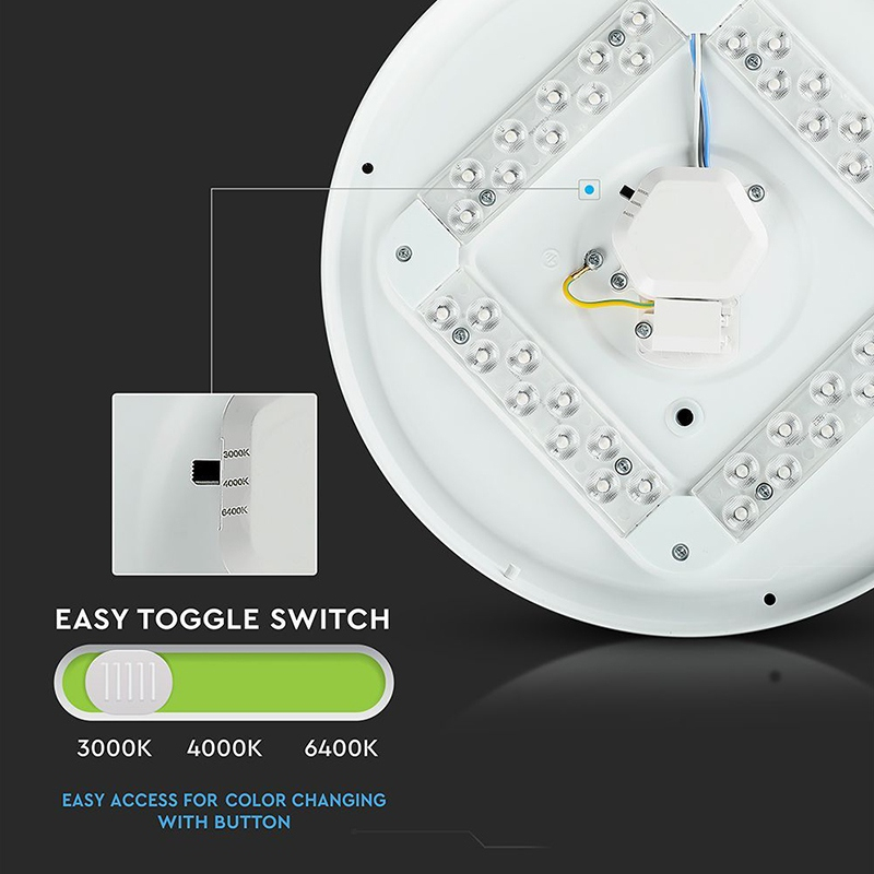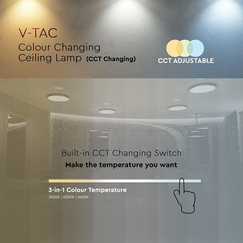 Plafoniera LED V-Tac 24W oferă o lumină puternică de 2600lm, cu dimensiuni compacte de 35cm și funcție 3 în 1 pentru reglarea temperaturii de culoare, adaptându-se oricărui ambient.