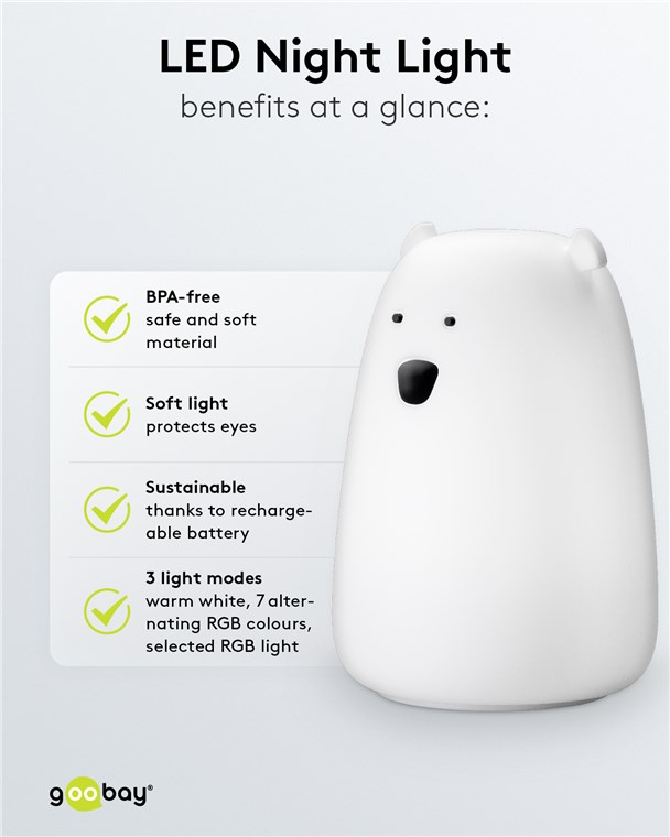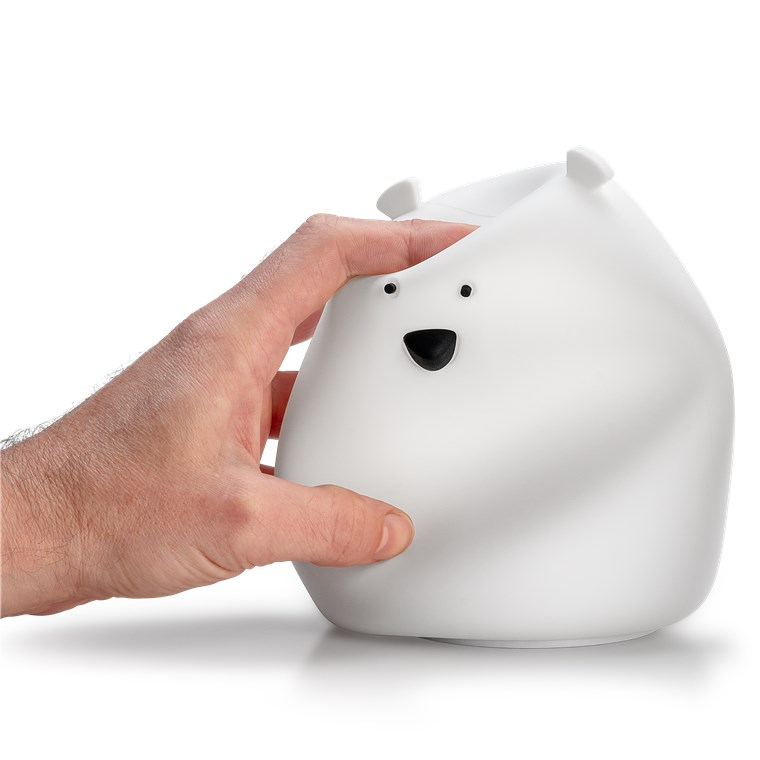 Această lampă de noapte cu LED în formă de urs polar oferă o iluminare plăcută și relaxantă, având 7 culori schimbabile și 3 moduri de iluminare. Echipată cu acumulator integrat, este portabilă și ușor de utilizat fără cabluri, ideală pentru camerele copiilor sau pentru momentele de relaxare din orice încăpere.