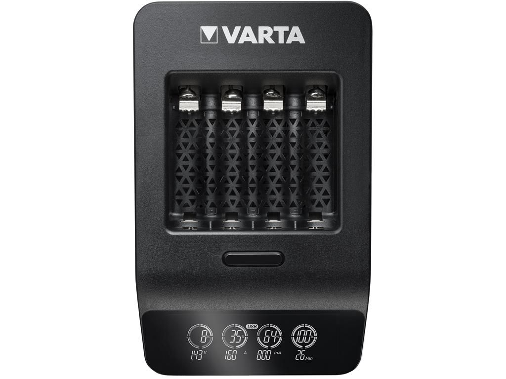 Incarcatorul Varta LCD Smart Charger+ 57684 este solutia perfecta pentru reincarcarea eficienta a acumulatorilor NiMH AAA si AA. Echipat cu un ecran LCD intuitiv, acesta afiseaza statusul de incarcare pentru fiecare acumulator in parte, asigurand control total si siguranta in utilizare. Pachetul include patru acumulatori AA de 2100 mAh, oferind o autonomie extinsa dispozitivelor tale.