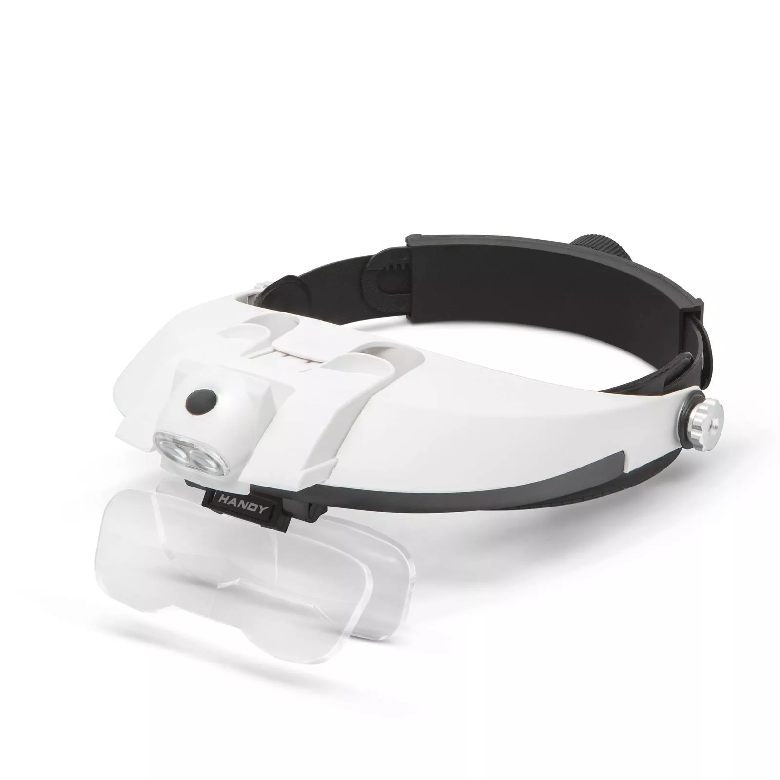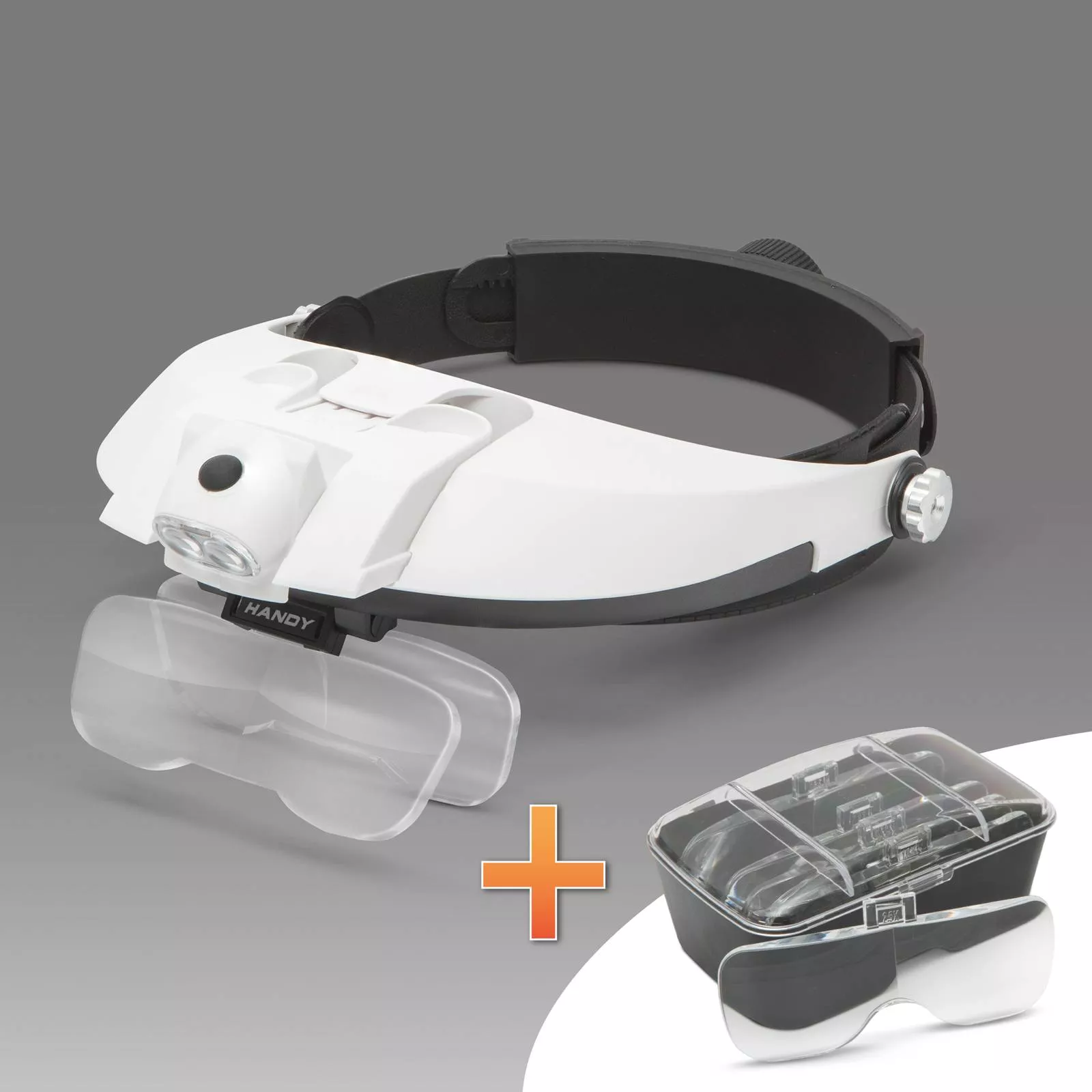 Lupa de cap HANDY cu iluminare LED incorporata ofera o solutie practica pentru lucrul detaliat, combinand patru lentile cu mariri variate: 1x, 1.5x, 2x, 2.5x si 3.5x, pentru o vizibilitate optima. Designul ergonomic si banda ajustabila asigura un confort sporit in timpul utilizarii indelungate, iar cele doua LED-uri lumineaza uniform suprafata examinata, facilitand activitati precum reparatii electronice, citit sau hobby-uri creative.