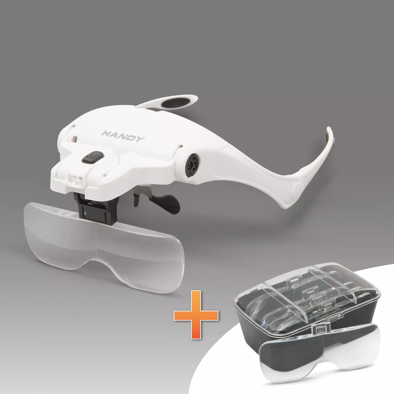 Lupa de cap HANDY cu iluminare LED și lentile duble oferă măriri variate, ideale pentru electronica, bricolaj și lucrări de precizie. Banderola reglabilă asigură confort, iar iluminarea cu 2 LED-uri facilitează vizibilitatea în spații întunecate. Lentilele interschimbabile permit măriri de la 1x până la 3.5x, iar designul permite utilizarea cu rama de ochelari sau banderola de cap, lăsând ambele mâini libere.