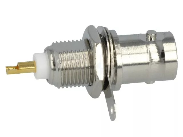 Mufa BNC NINIGI BNC-006-L este un soclu mama cu filet lung, proiectat pentru lipire si montare usoara pe panouri, asigurand o conexiune sigura si stabila pentru cabluri coaxiale in aplicatii video si RF.