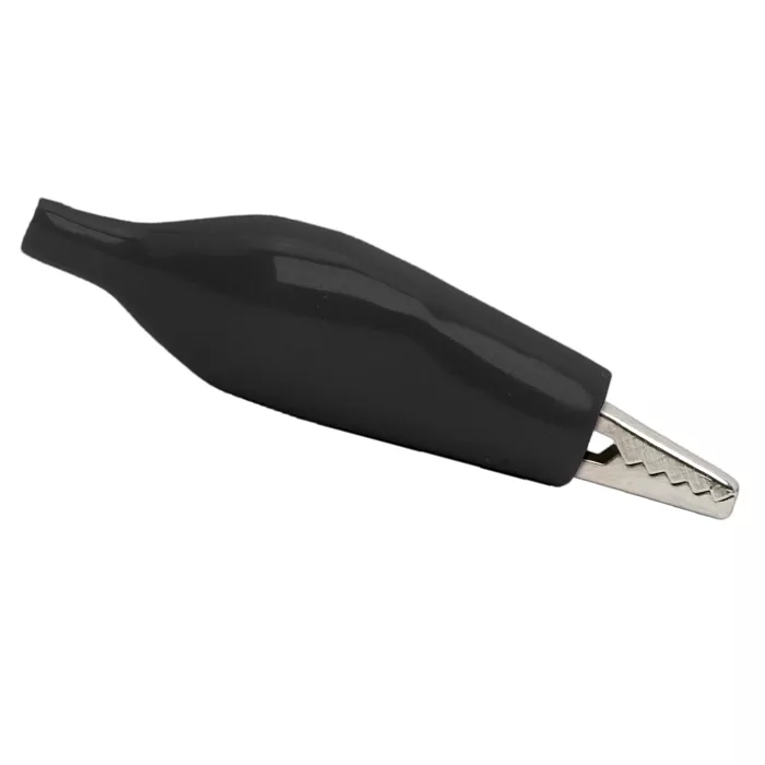 Clema crocodil mare negru 44mm 5A este un accesoriu esențial pentru conexiuni electrice temporare, oferind o prindere sigură și stabilă datorită designului său robust și dimensiunii generoase.