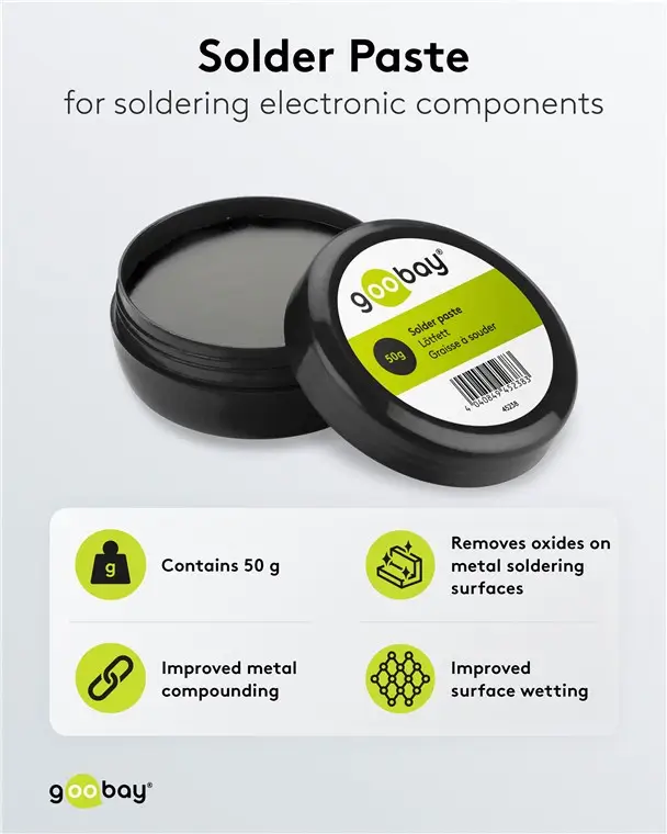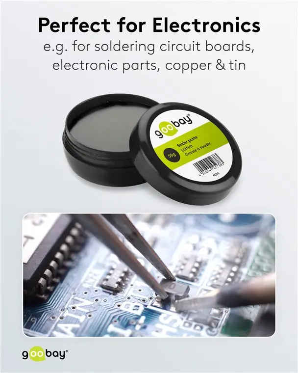 Pasta de lipit Goobay 45238 este esențială pentru orice lucrare de lipire precisă și curată. Concepută special pentru lipirea moale a contactelor electrice, plăcilor de circuite imprimate, cablurilor și componentelor electronice, oferă rezultate profesionale și durabile.
