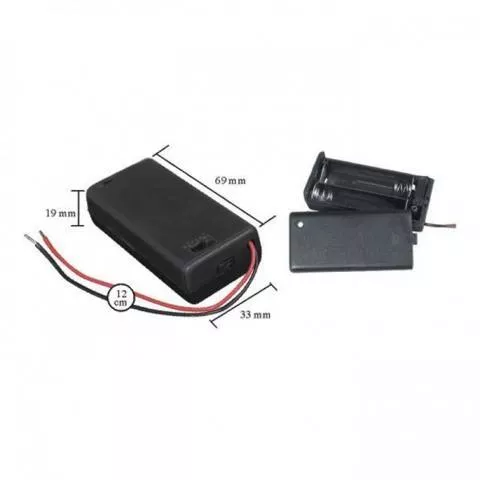 Acest suport pentru baterii 2x AA este echipat cu fir, capac de protectie si intrerupator integrat, oferind o solutie practica si sigura pentru alimentarea dispozitivelor electronice portabile.
