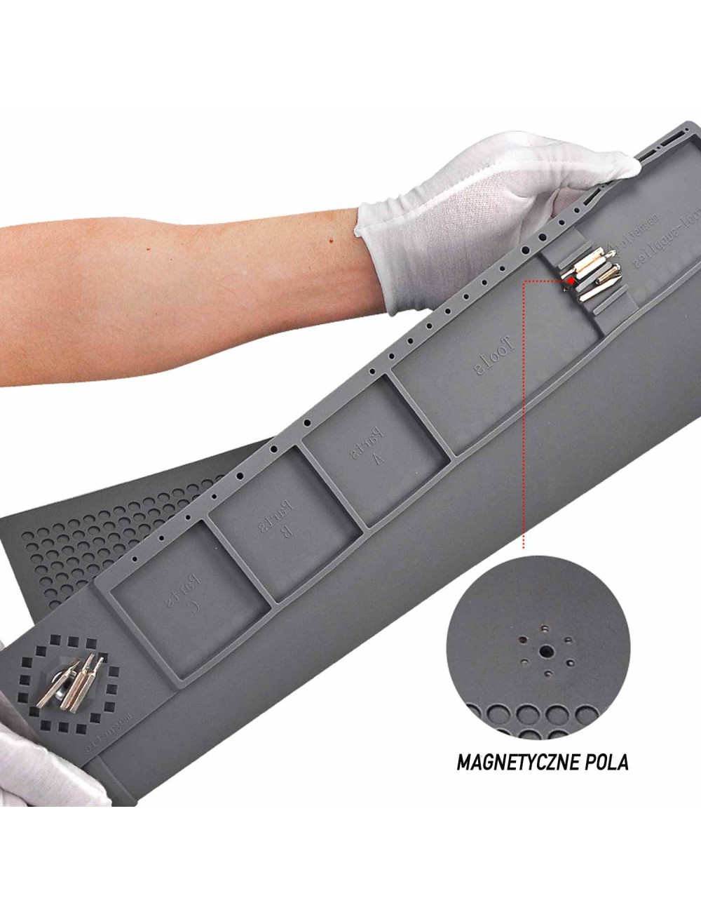 Padul siliconic de 46x31 cm este ideal pentru protejarea suprafețelor de lucru în timpul reparațiilor electronice, oferind o bază stabilă și rezistentă la căldură și substanțe chimice.