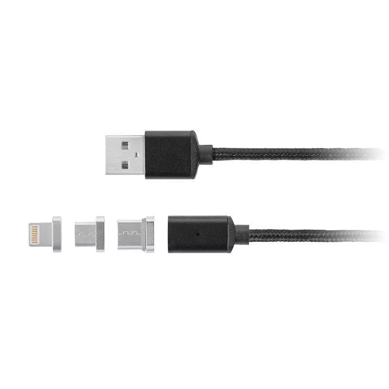 Cablu USB magnetic Kruger&Matz, lungime 1m, compatibil micro USB și Lightning, oferă o conexiune rapidă și sigură pentru încărcare și transfer date. Designul magnetic facilitează conectarea și deconectarea fără uzură, fiind ideal pentru utilizare zilnică.